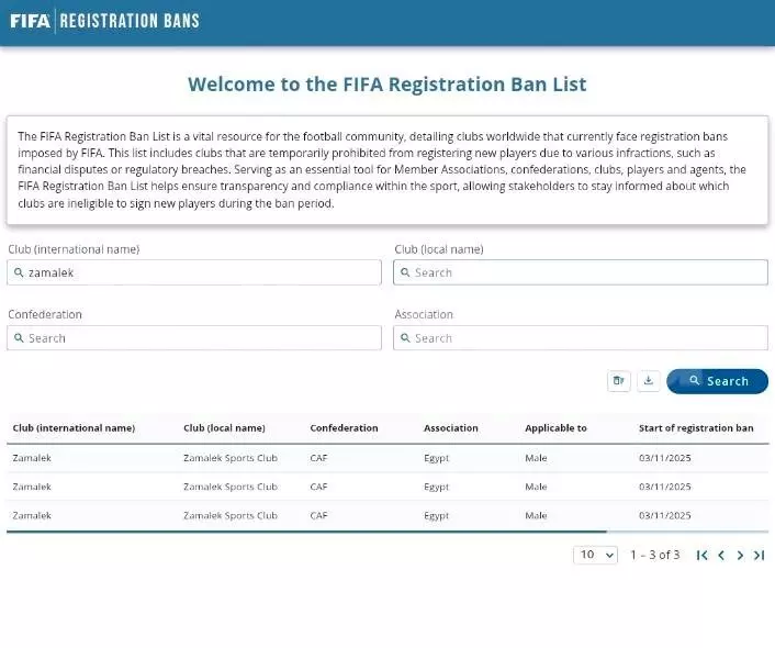 أعلنت بوابة إيقاف القيد الخاصة بالاتحاد الدولي لكرة القدم “فيفا” عن إيقاف قيد جديد لنادي الزمالك.
