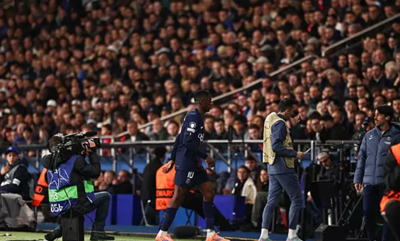وبحسب ما أظهرته الكاميرات التليفزيونية، لم يجلس ديمبيلي على مقاعد بدلاء باريس سان جيرمان، بل ذهب على الفور إلى غرفة الملابس، ليثير بذلك قلق المدرب الإسباني لويس إنريكي بشأن إصابته.