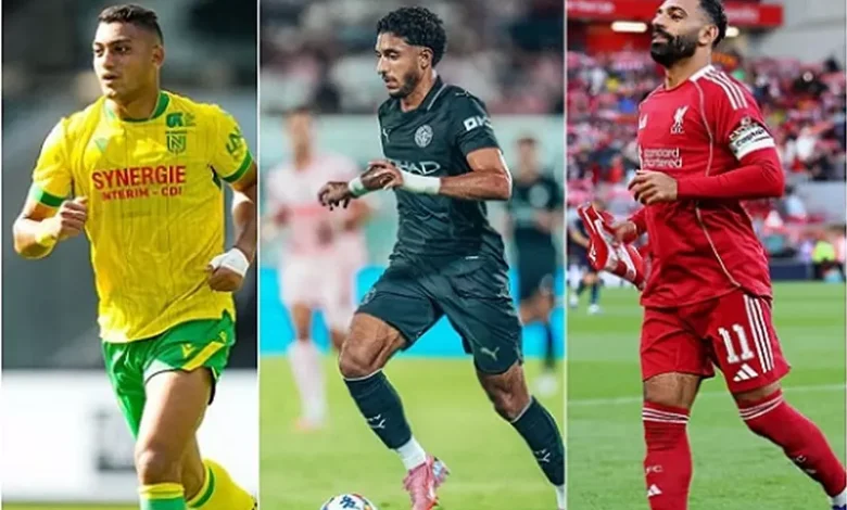 ويحترف 4 لاعبين مصريين في الدوريات الخمسة الكبرى في أوروبا، هم محمد صلاح في ليفربول، عمر مرموش في مانشستر سيتي، ومصطفى محمد في نانت، إلى جانب محمد عبد المنعم مع نيس.